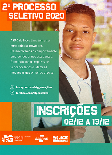 [vc_row full_width=”” parallax=”no” parallax_image=”” section=”no” sectionwidth=”centered” paddingtop=”80px” paddingbottom=”80px” backgroundrepeat=”repeat” backgroundposition=”left top” backgroundattachment=”scroll” backgroundsize=”auto” textcolor=”default” parallax_speed=”1″ visibility=”mt-visible-all”][vc_column width=”2/3″][vc_text_separator title=”2º Processo Seletivo 2020″ title_align=”separator_align_center” align=”align_center” style=”” border_width=”” el_width=”” margintop=”” marginbottom=””]Resultado [vc_separator align=”align_center” style=”” border_width=”” el_width=”” margintop=”” marginbottom=””]Edital Processo seletivo[vc_separator align=”align_center” style=”” border_width=”” el_width=”” margintop=”” marginbottom=””][vc_column_text css_animation=””]“Estudar na Escola de Formação Gerencial de Nova Lima significa ter o melhor dos dois mundos: Ensino Médio com pegada empreendedora. Ao final do curso o aluno conquista o certificado de Ensino Médio e o diploma de Técnico em Administração. Além da preparação para vestibulares, o aluno encontra projetos “mão na massa” que unem conhecimento técnico em gestão ao desafio de problemas reais. Os projetos TUTORIA, EMPRESA SIMULADA, Vitrine são alguns dos momentos que preparam o jovem para desenvolver sua atitude empreendedora.”