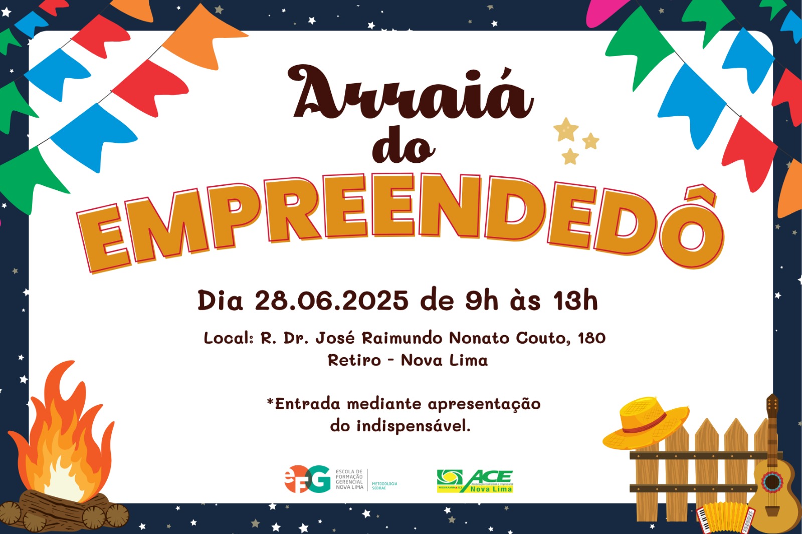 No dia 28/06, das 9h às 13h, a EFG Nova Lima vai virar um verdadeiro arraial!
