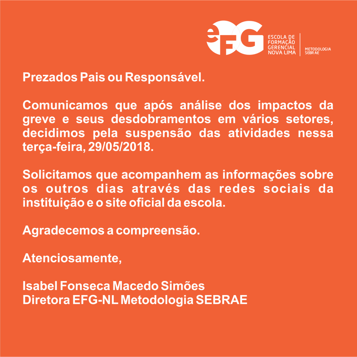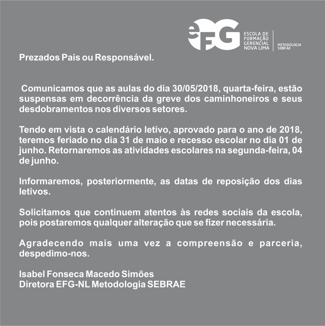Prezados Pais ou Responsável.