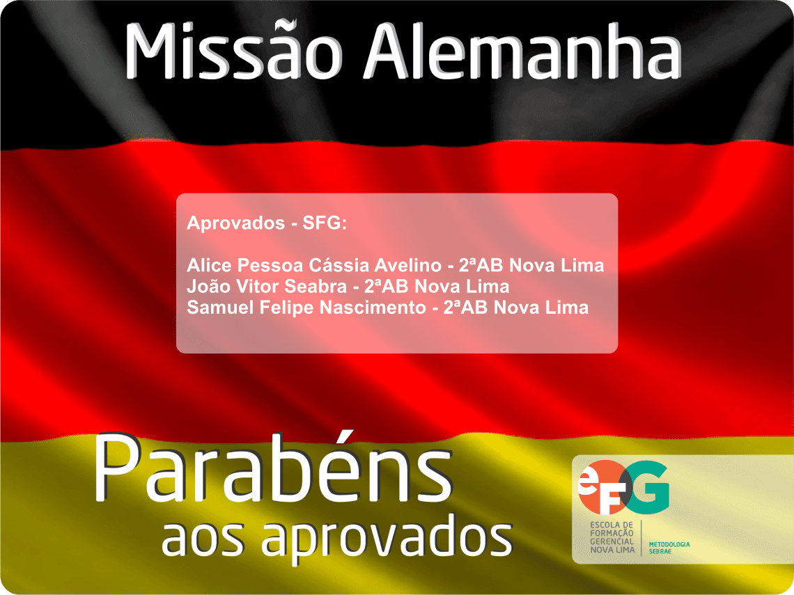 O projeto Missão Alemanha é um dos projetos extracurriculares da Escola do Sebrae, que proporciona ao aluno estar presente no maior evento internacional de empreendedorismo da Europa. O aluno tem a oportunidade de participar do desafio global de negócios – Global Enterprise Challenge (GEC) – promovido pela Europa Pen International, e de representar o Brasil em uma Feira Internacional de Empresas Simuladas, expondo e comercializando produtos de forma simulada com outros jovens de todo o mundo. A Missão conta ainda com visitas técnicas a grandes empresas europeias.